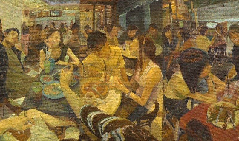 “Our theme, Rakyat Hidup, Bersatu dan Maju, is a reflection of how Malaysians live — not just side by side, but truly together,” says collector Bingley Sim. “In every piece, you’ll find glimpses of everyday harmony, whether it’s a neighbour’s kindness, a shared meal, or the resilience of those who came from elsewhere and now call this home. These quiet, powerful gestures echo across the bab in the exhibition, reminds us that unity isn’t about being the same, but about choosing to see and support each other, again and again.”